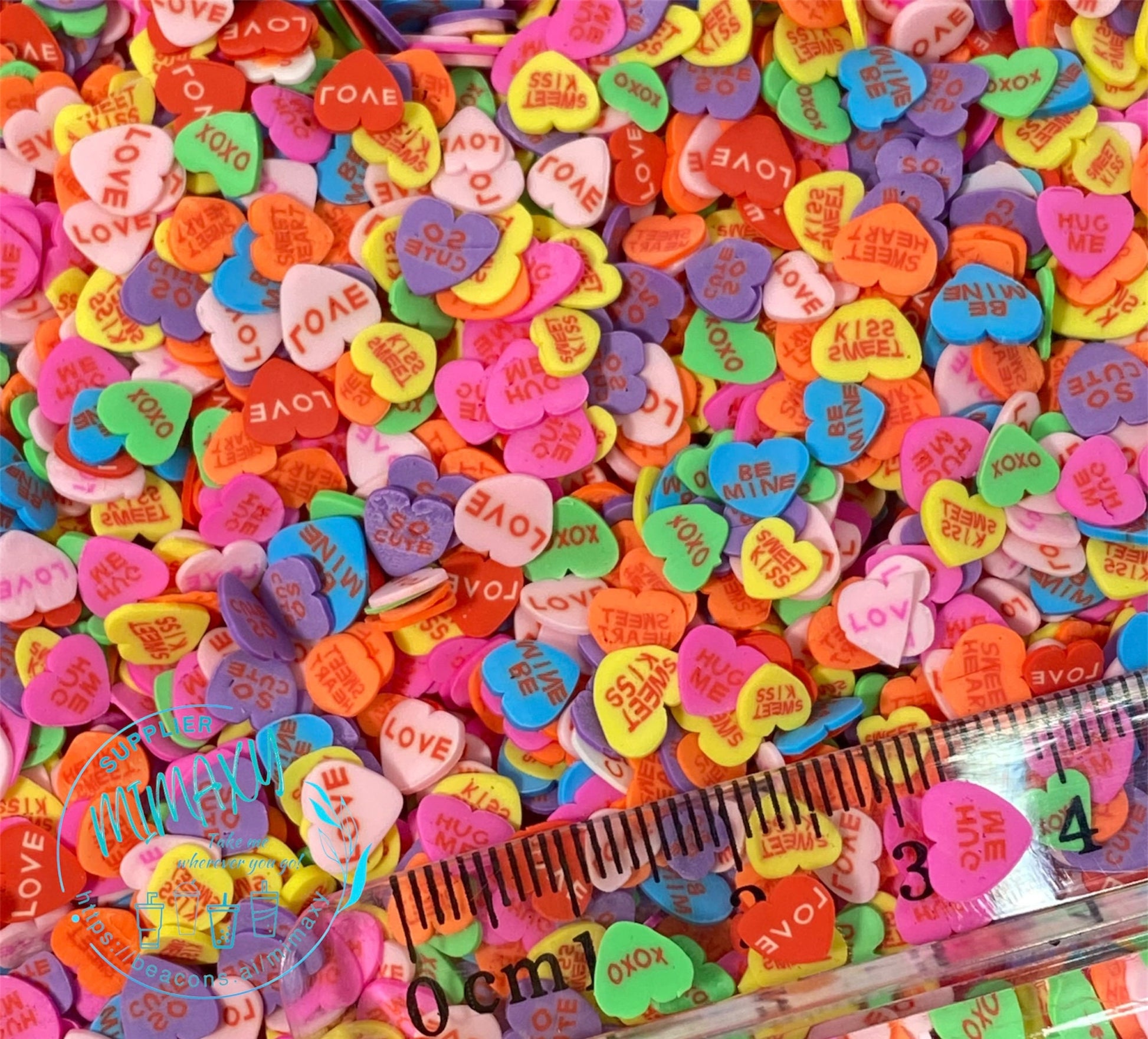 5mm Mix Valentine's day Polymer Clay Slices cherries, hearts, chocolate, strawberries, rainbow, pearls, kisses, icecream, mail lipstick LOVE